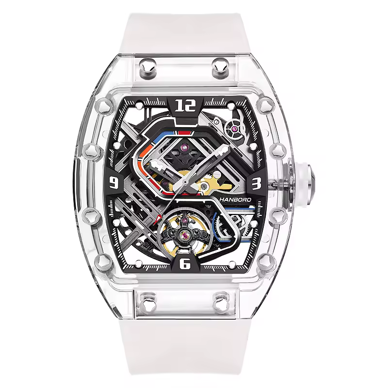 42mm sapphire crystal, open-worked dial, automatic movement, 5 ATM, luminous, stainless steel, calendar.